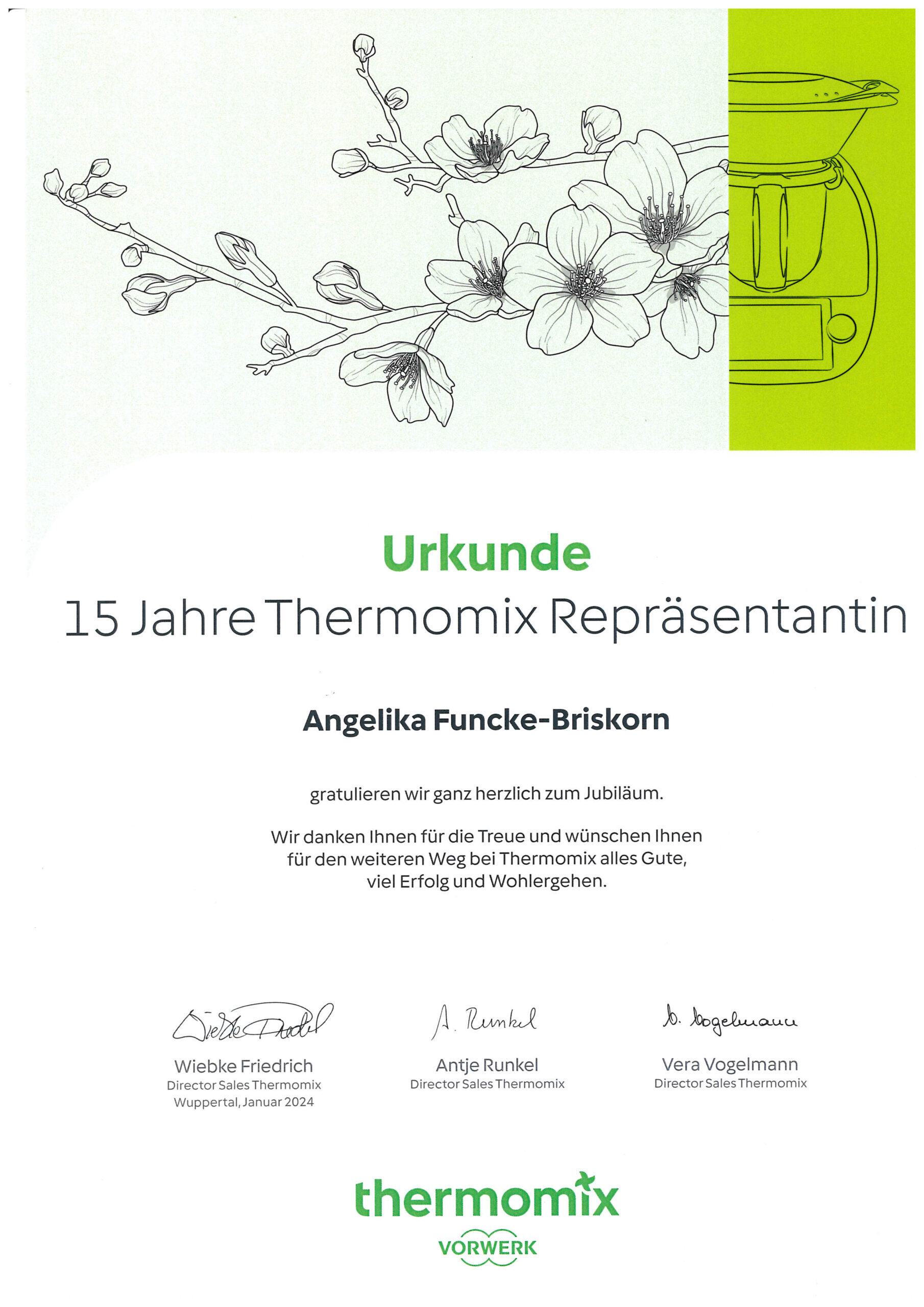 Hallo und herzlich willkommen! Mein Name ist Angelika Funcke-Briskorn, Repräsentantin bei Vorwerk Thermomix. Ich liebe es, Menschen dabei zu helfen, ihre Koch- und Backleidenschaft mit dem Thermomix zu entdecken.